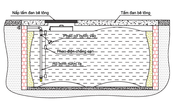 Bể ngầm cần đặt thấp hơn đường ống cấp nước sạch để nước có thể tự chạy vào bể