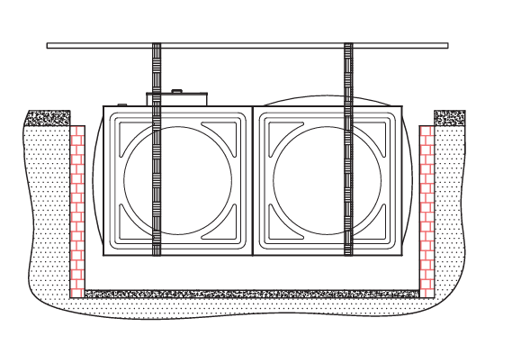 - Hạ bể xuống dưới hố bằng cách dùng dây vải vòng qua dưới đáy bể