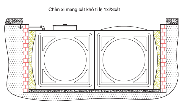 Trong quá trình lắp đặt, cần cấp đầy nước vào bên trong bể trước khi tiến hành chèn hỗn hợp xi măng cát khô xung quanh